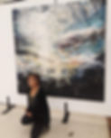 Gaëlle Godart, paroles sur des toiles d'Ema Courtois (posant devant l'une de ses oeuvres).